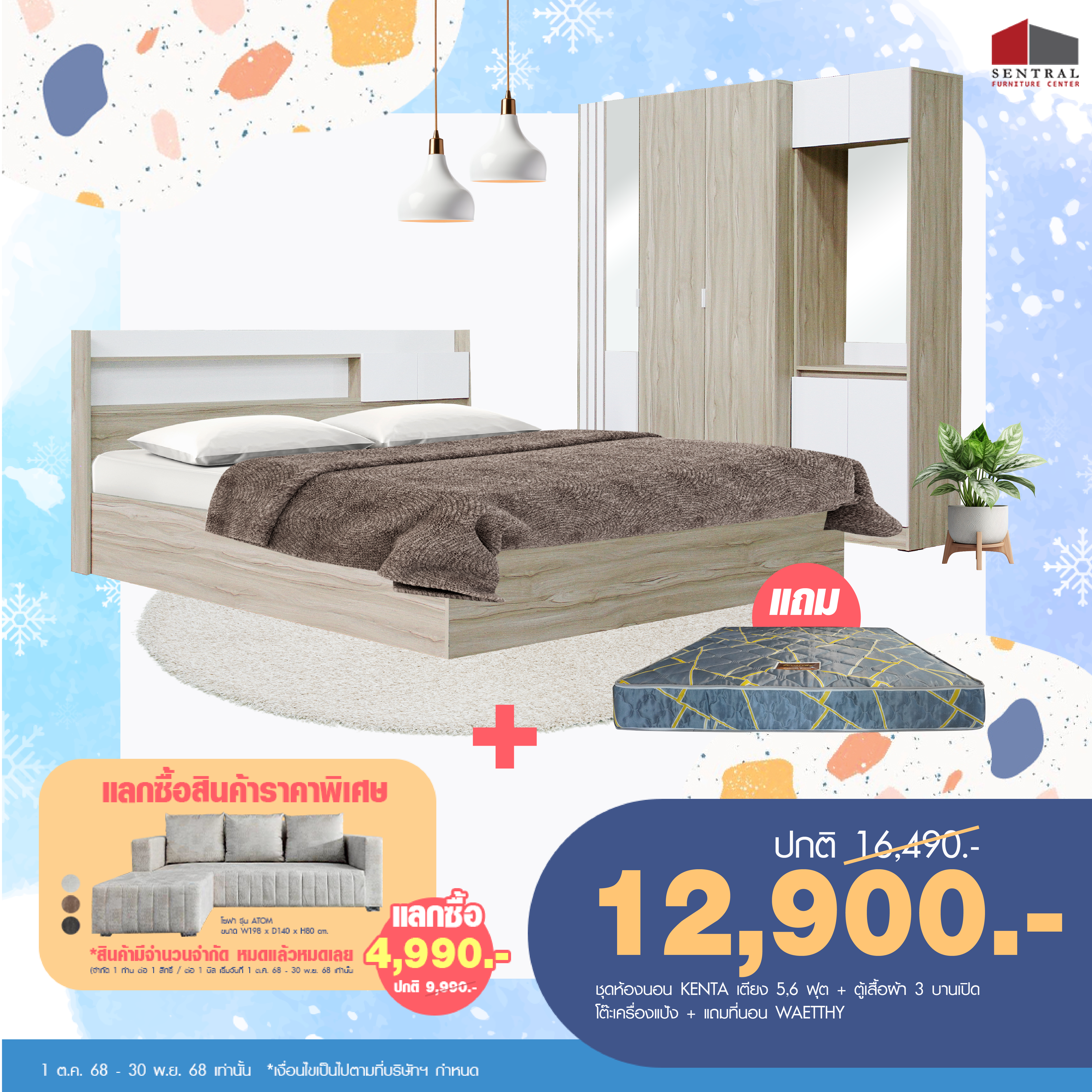 ชุดห้องนอน 5,6ฟุต KENTA 120 ตู้ 3 บาน