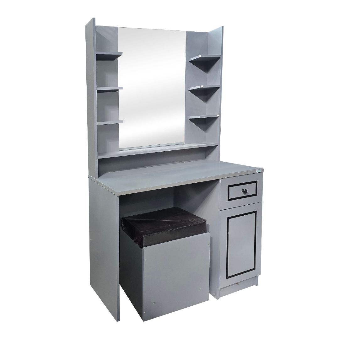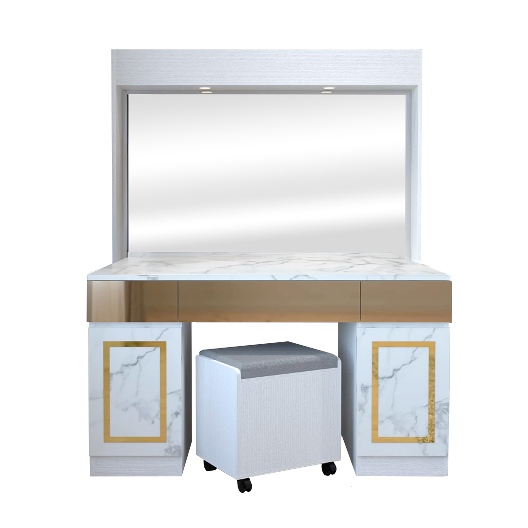 โต๊ะเครื่องแป้ง 4D ดีไซน์หรูหรา ฟังก์ชันครบ ตอบโจทย์ทุกความต้องการของการแต่งหน้าและจัดเก็บของใช้ส่วนตัวอย่างลงตัว มาพร้อมกระจกขนาดใหญ่ มองเห็นได้เต็มเฟรม เพิ่มความสะดวกในการแต่งตัว
