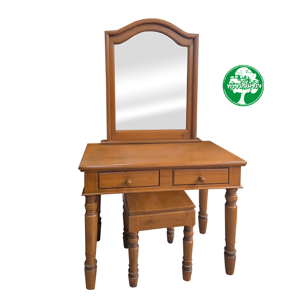 โต๊ะแป้งขากลึง งานไม้แท้ แต่งแต้มความคลาสสิกให้มุมแต่งตัวของคุณด้วย โต๊ะแป้งขากลึง งานไม้แท้ ผลิตจากไม้ยางพาราแท้ 100% แข็งแรงทนทานและเป็นมิตรต่อสิ่งแวดล้อม โดดเด่นด้วยดีไซน์ขากลึงสุดประณีตที่สะท้อนงานฝีมือคุณภาพสูง ลายไม้ธรรมชาติช่วยเพิ่มบรรยากาศอบอุ่นและหรูหราในเวลาเดียวกัน มาพร้อมพื้นที่จัดเก็บอย่างเป็นระเบียบด้วยลิ้นชักและช่องเก็บของ เหมาะสำหรับเก็บเครื่องสำอาง น้ำหอม และอุปกรณ์แต่งตัวต่าง ๆ ให้หยิบใช้ได้สะดวก กระจกขนาดกำลังดีให้ภาพคมชัด ช่วยให้การแต่งหน้าของคุณเป็นเรื่องเพลิดเพลิน