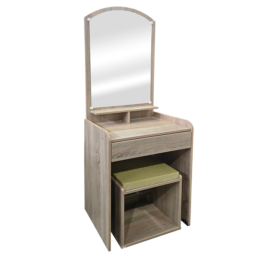 โต๊ะเครื่องแป้ง MODEL 793 เพิ่มความอบอุ่นและสไตล์ธรรมชาติให้มุมแต่งตัวของคุณด้วย โต๊ะเครื่องแป้ง MODEL 793  ผลิตจากไม้ยางพาราแท้ 100% แข็งแรง ทนทาน ใช้งานได้ยาวนาน ดีไซน์เรียบง่ายแต่มากด้วยเสน่ห์จากลายไม้ธรรมชาติ พร้อมกระจกขนาดพอเหมาะ ช่วยให้การแต่งหน้าหรือจัดทรงผมเป็นเรื่องง่าย มาพร้อมสตูลเข้าชุดที่ออกแบบให้รองรับการนั่งอย่างสบาย และสามารถจัดเก็บเข้าช่องได้อย่างลงตัวเมื่อไม่ใช้งาน เพิ่มพื้นที่ใช้สอยให้ห้องดูเป็นระเบียบ