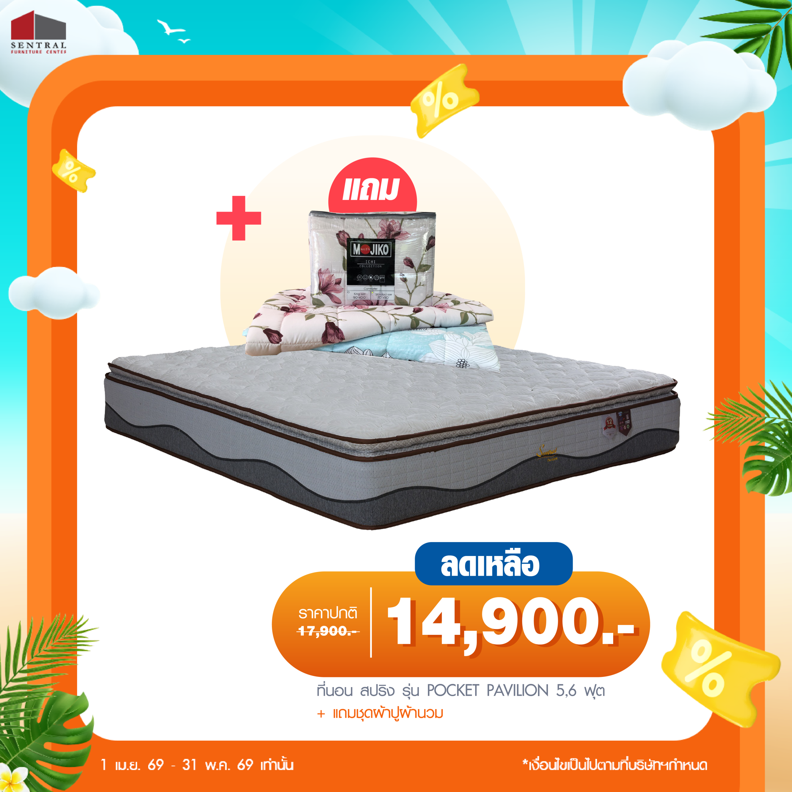 ที่นอน POCKET PAVILION 5,6 ฟุต แถมชุดผ้าปูผ้านวม